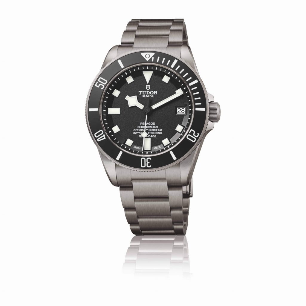 The Tudor Pelagos began its life in 1954 as the Tudor Submariner, owing to its position as the sister company of Rolex – and, over 60 years later, it has developed into a distinctive and sophisticated watch which is as practical as it is fashion-forward. With a contemporary look and feel characterised by its titanium bracelet and ceramic, black bezel, the Pelagos is waterproof to 500 metres and is equipped with a helium escape value, making it a prime choice for serious diving. One of the first models to be fitted with movements developed by Tudor, the Pelagos points