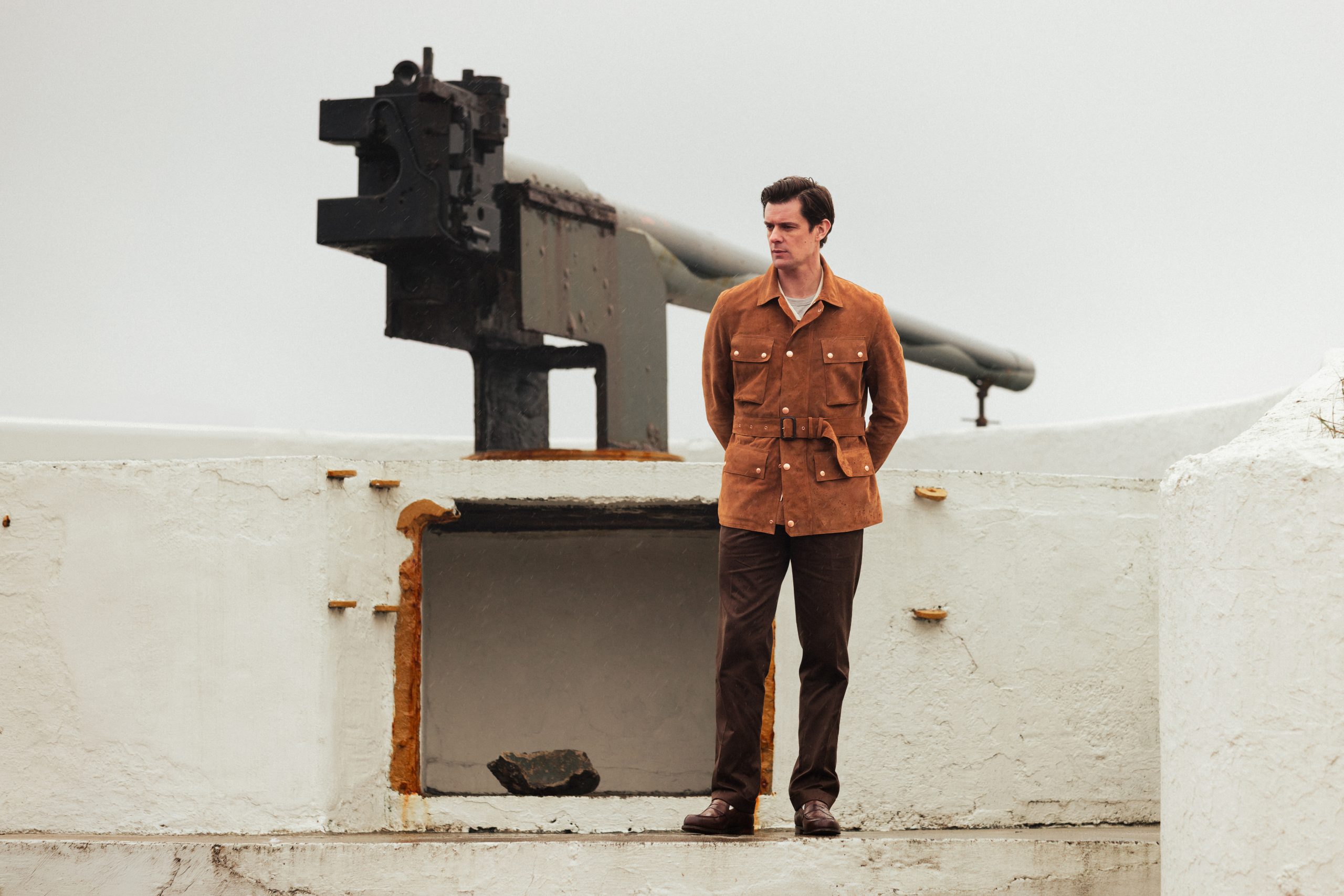 To understand STEADFAST, you must first understand where it was born and where it was photographed. The campaign images were captured at Heugh Battery on the Hartlepool coastline – the first place on British soil attacked during the First World War on 16 December 1914. That site remains a monument to endurance. In Manchester, so too stands Private White V.C.’s factory – the last remaining coat maker in a city once known as the centre of the industrial world. The collection was photographed on that historic ground and made beneath this enduring roof.