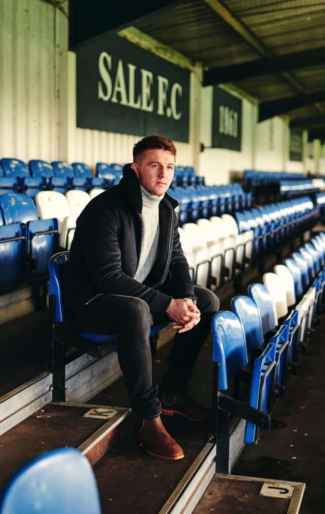 Sitting down with Tom amidst the stalls of Sale Sharks’ oldest training ground, Heywood Road, it’s easy to forget that Tom Curry is both the youngest player to start at flanker for England and the youngest England forward since 1912. At just 21, the Sale Sharks’ flanker exudes a level of clarity, composure, and professionalism that far exceeds his age. It also has to be said that, for a guy with a frame purpose-built for the hell-for-leather endeavour of sheering people in half on the pitch, he looks right at home in a turtleneck. EJ